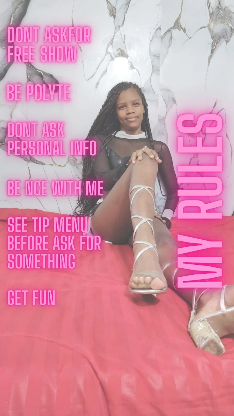 Doggy Style, Ahegao, Selkäsauna, Eroottinen tanssi, Sormetus, Strippaus, Hieronta, Tissipano, Suukapulointi, Nailon, Runkkaus, Orgasmi, Yläosattomissa, Dildo tai vibraattori, Jalkafetissi, Vilauttelu, Syväkurkku, Runkkausohjeet, Suihinotto, Masturbointi, Jalkaseksi, Öljyesitys, Korkokengät, Kalu-luokitus, Facesitting, Squirttaus, Lehmityttö, Twerkkaus, Jooga